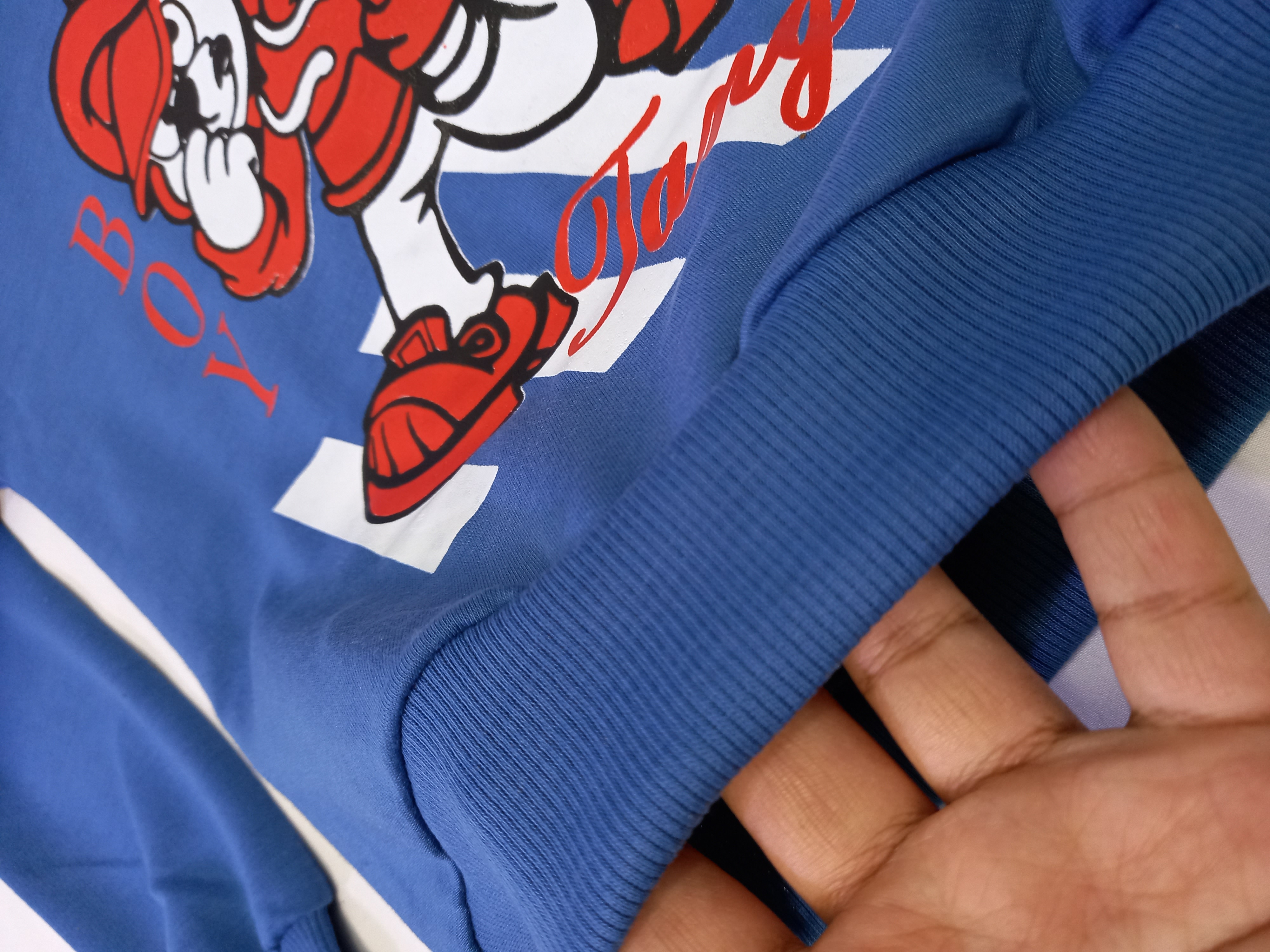 ست بلوز و شلوار پسرانه نخ پنبه رنگ آبی تیره سایز 50 ، 55 کد 1082