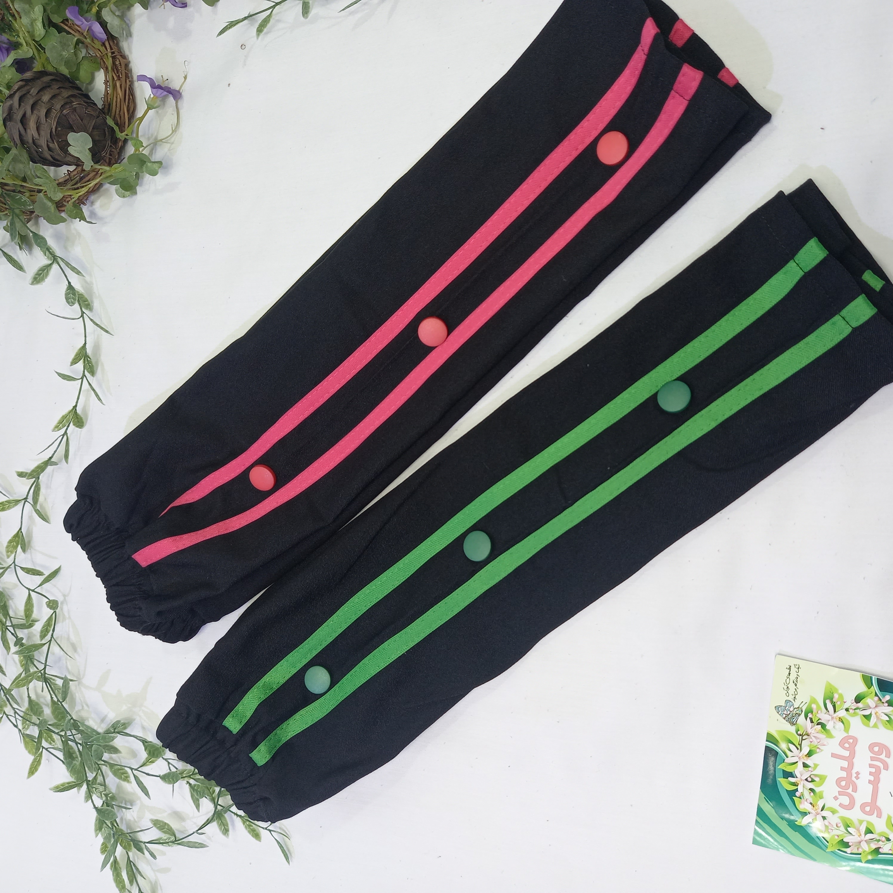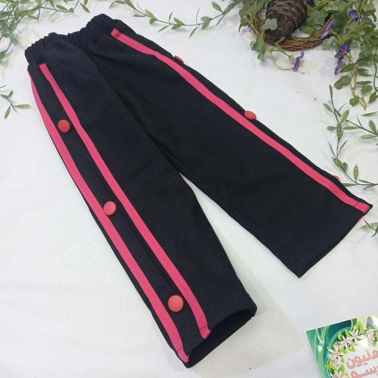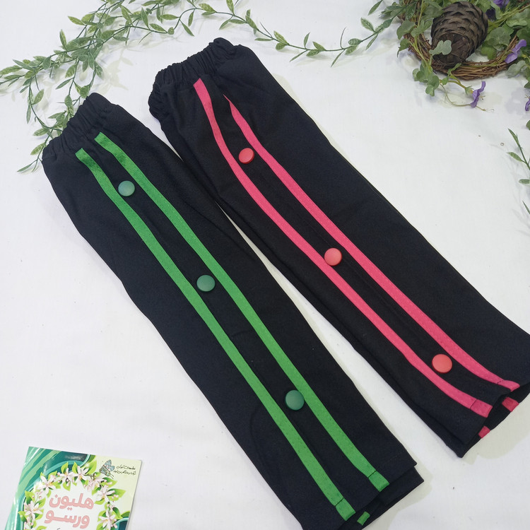 شلوار بچگانه بگ بغل نوار و دکمه دار رنگ سبز و صورتی مناسب سن 2 تا 5 سال کد 1096