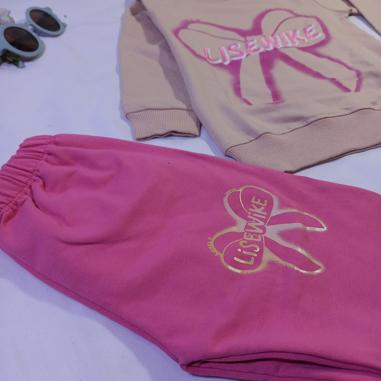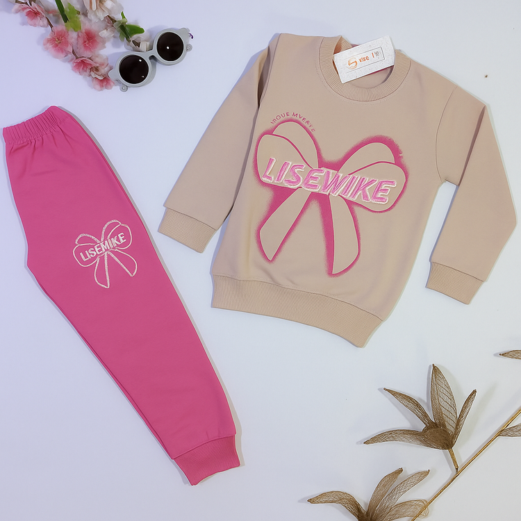 ست 2تیکه بلوز و شلوار زمستانه دخترانه پنبه لاکرا دار با طرح پاپیون حدود سنی 2 الی 6 سال کد 1010