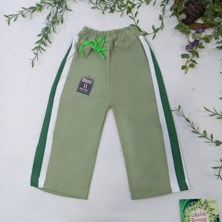 شلوار بگ اسپرت بچگانه بغل نوار سفید رنگ سبز مناسب سن 2 تا 5 سال کد 1097