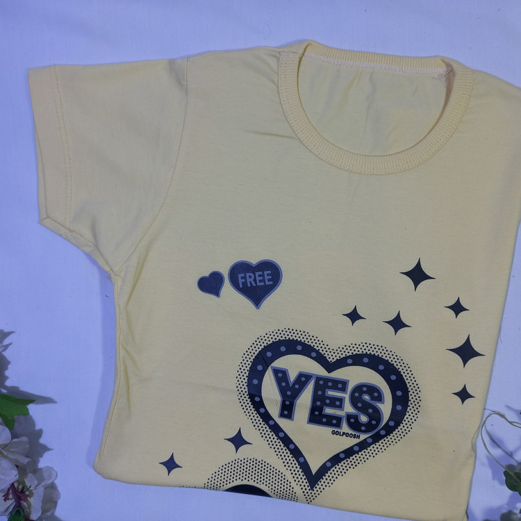 تیشرت دخترانه آستین کوتاه با طرح چاپی قلبی مشکی ،جنس نخ پنبه،