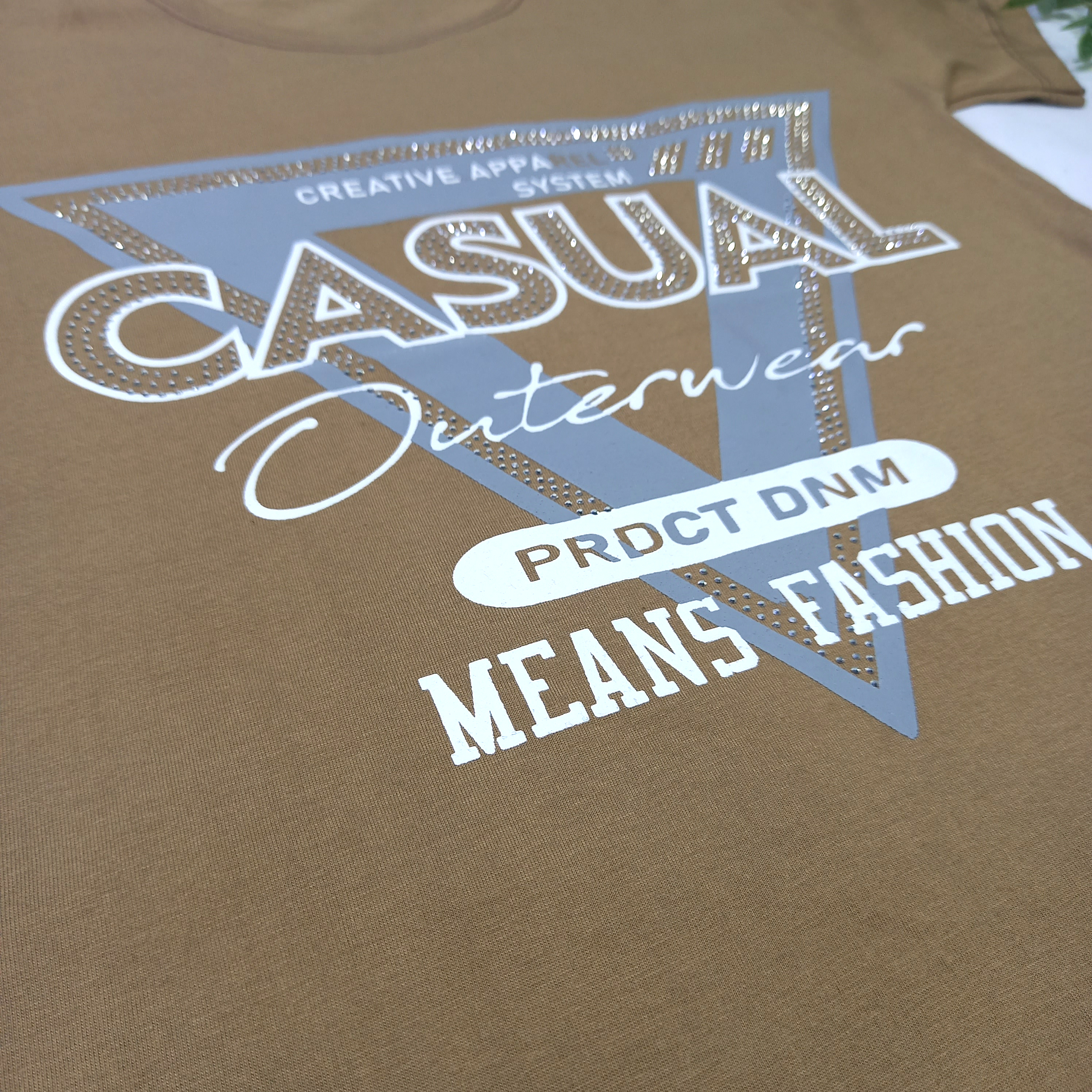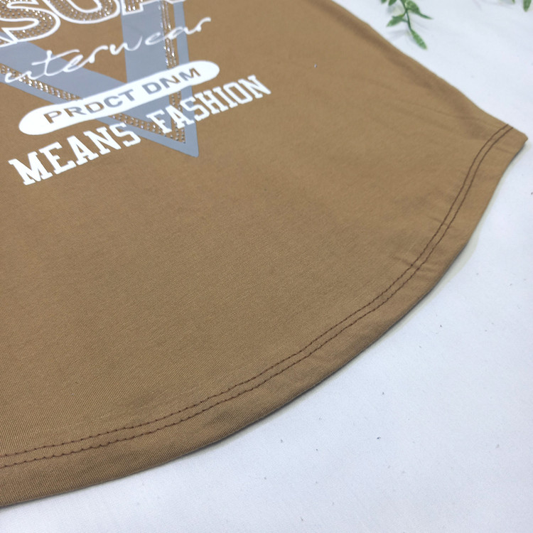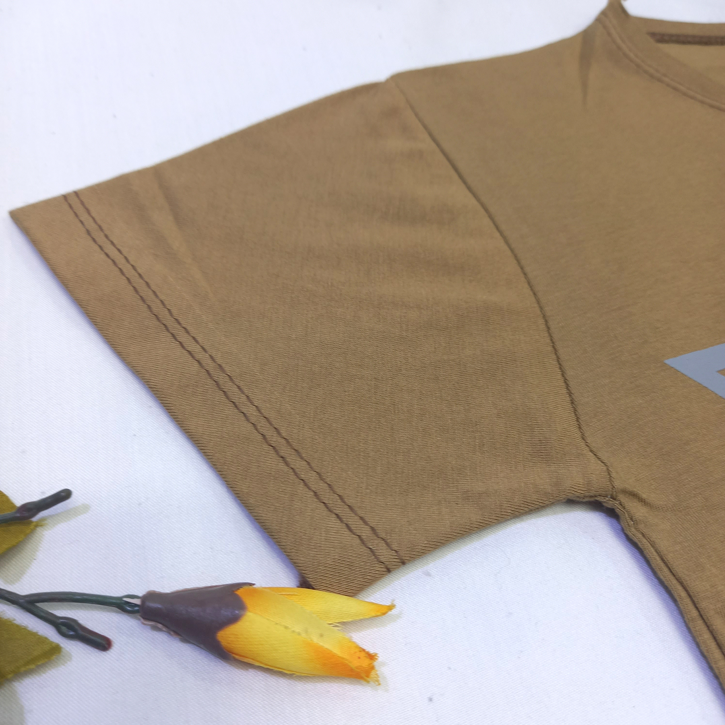 تیشرت بچگانه آستین کوتاه یقه گرد نخ پنبه نگین کاری شده رنگ شتری کد1103