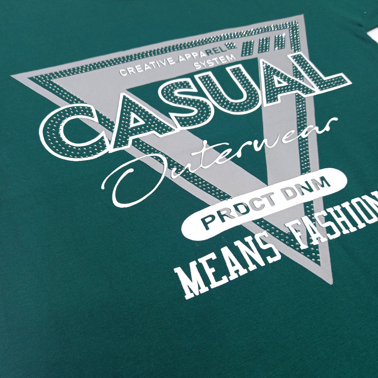 تیشرت آستین کوتاه اسپرت با طرح چاپی و نگین کاری شده با جنس نرم و خنک ، انتخابی عالی برای فصل تابستان و بهار طراحی زیبا و رنگ جذاب این لباس، استایل کودک شما را خاص و شاداب میکند . این تیشرت با رنگ سبز کله غازی ، حس شادی و انرژی را به استایل کودک میبخشد. جنس پارچه نرم، سبک و ضد حساسیت بوده و برای پوست حساس کودکان بسیار مناسب است.