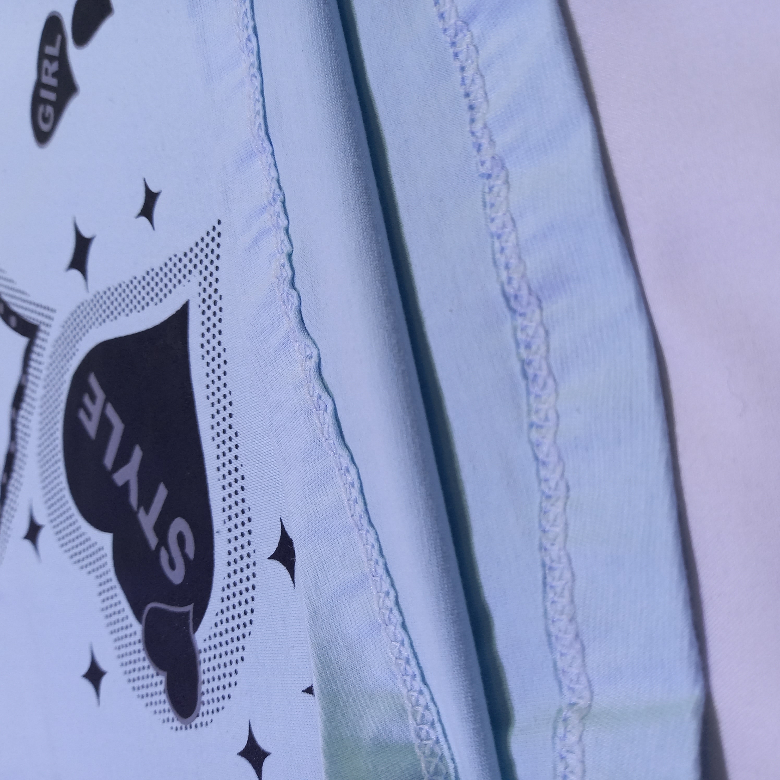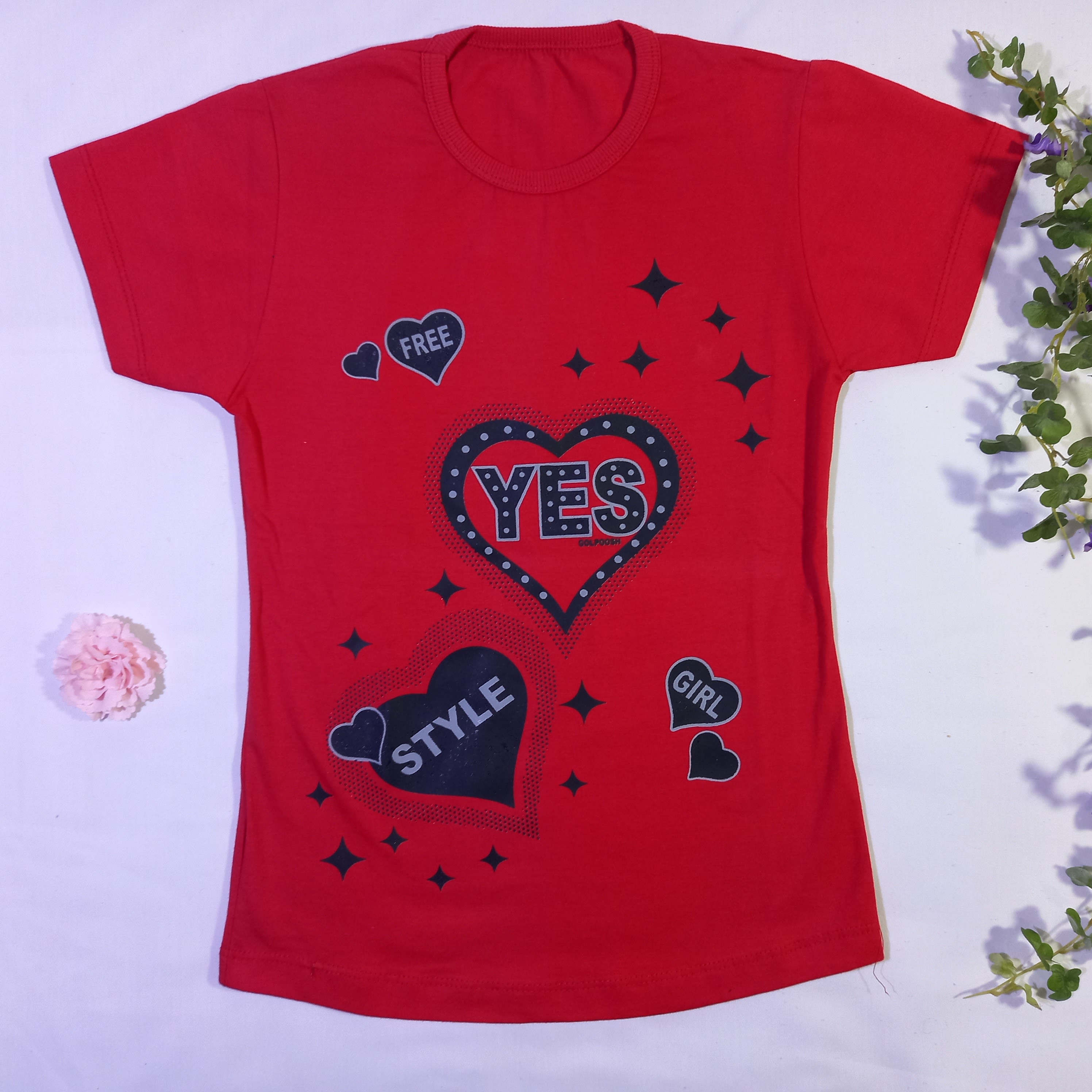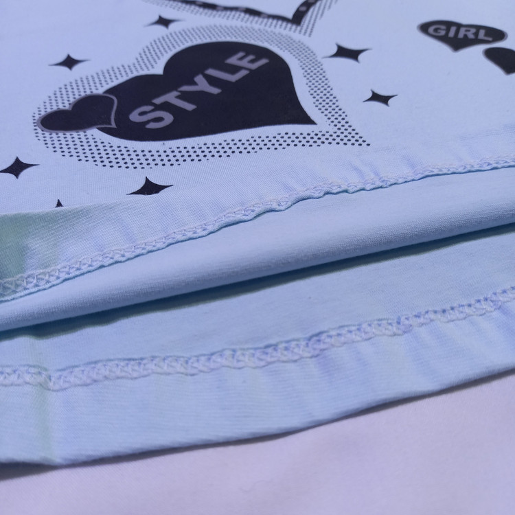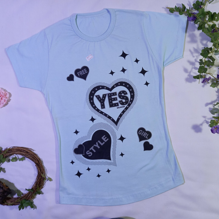 تیشرت دخترانه آستین کوتاه آبی با طرح قلبی مشکی ،جنس نخ پنبه،