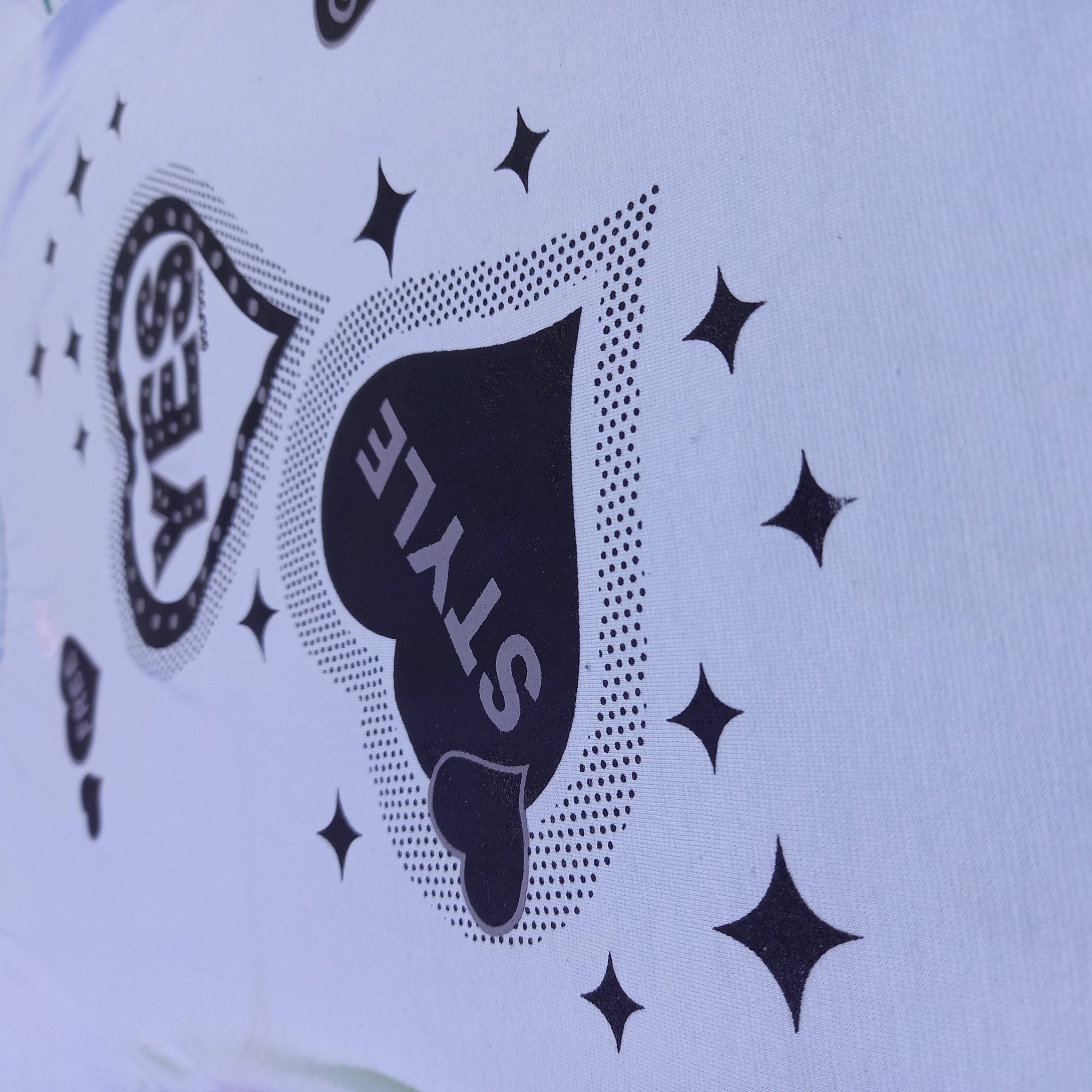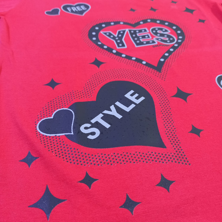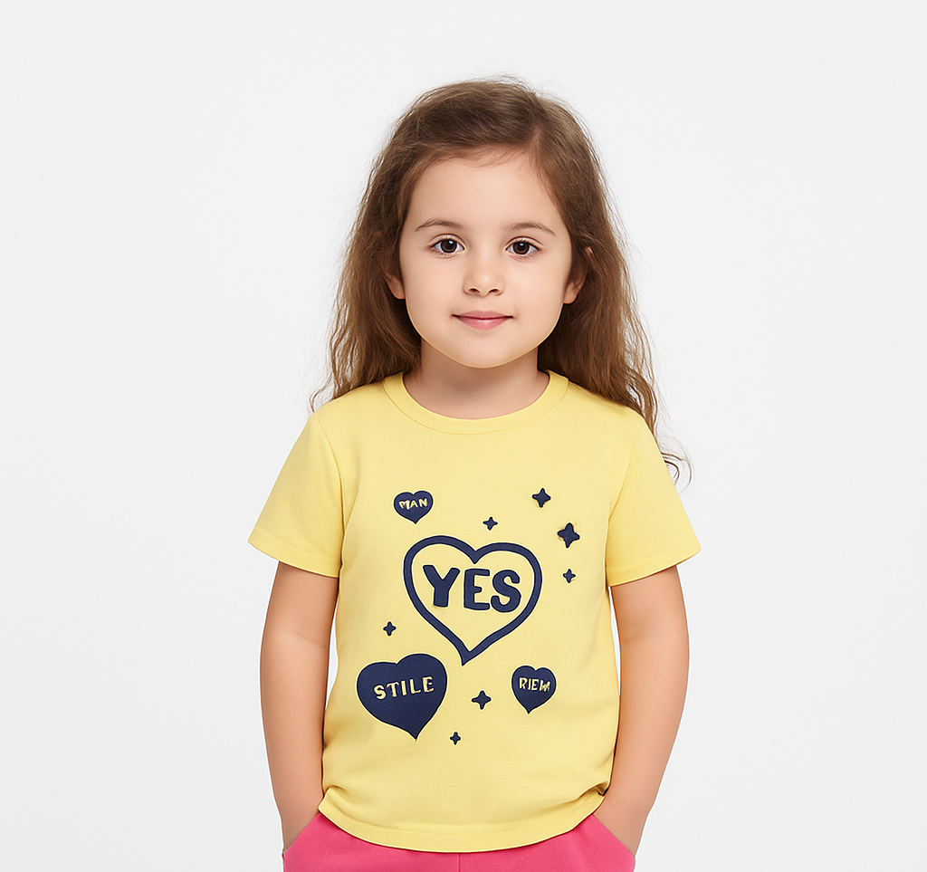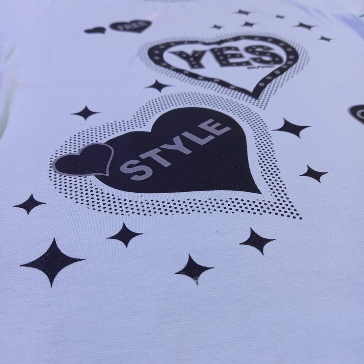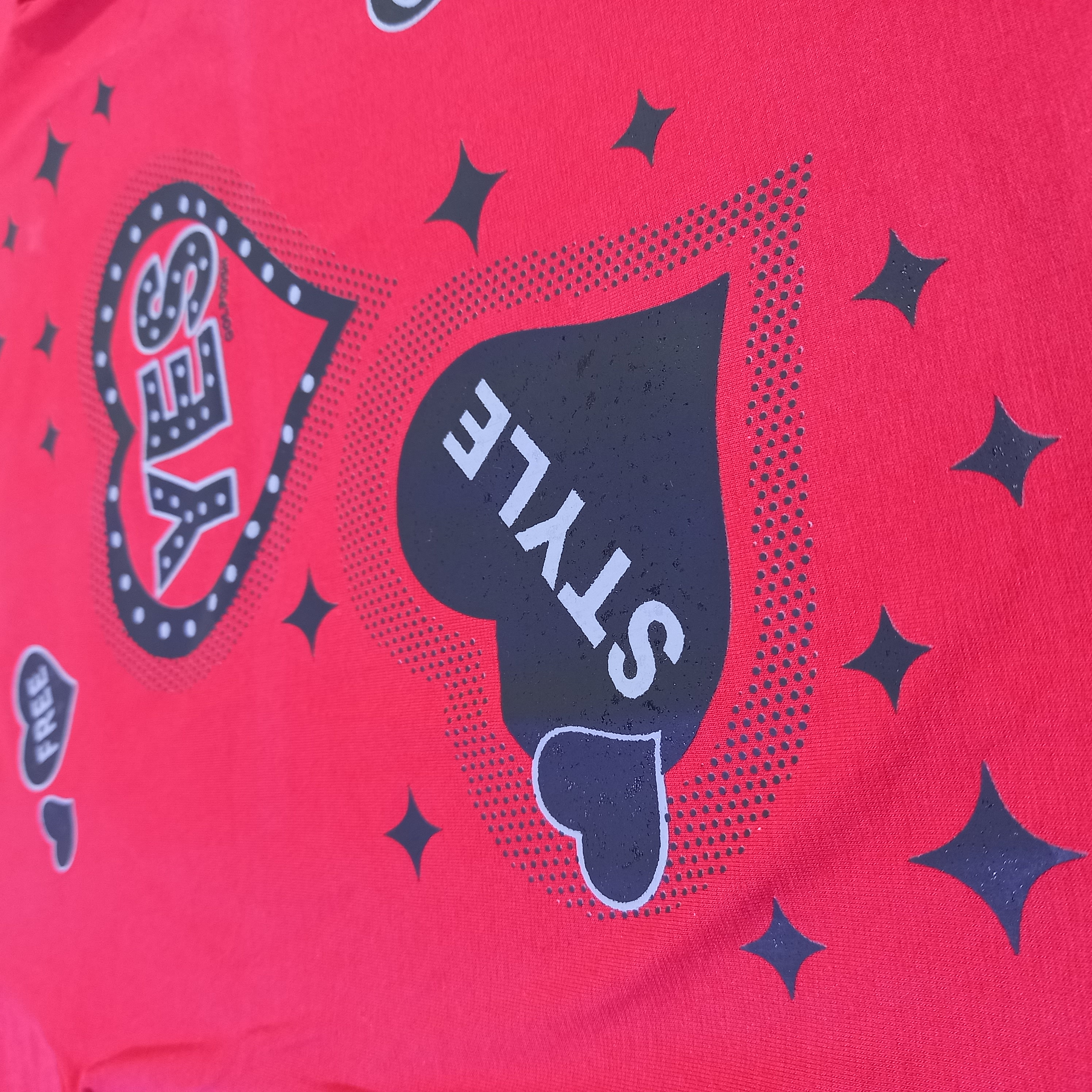 تیشرت دخترانه آستین کوتاه آبی با طرح قلبی مشکی ،جنس نخ پنبه،