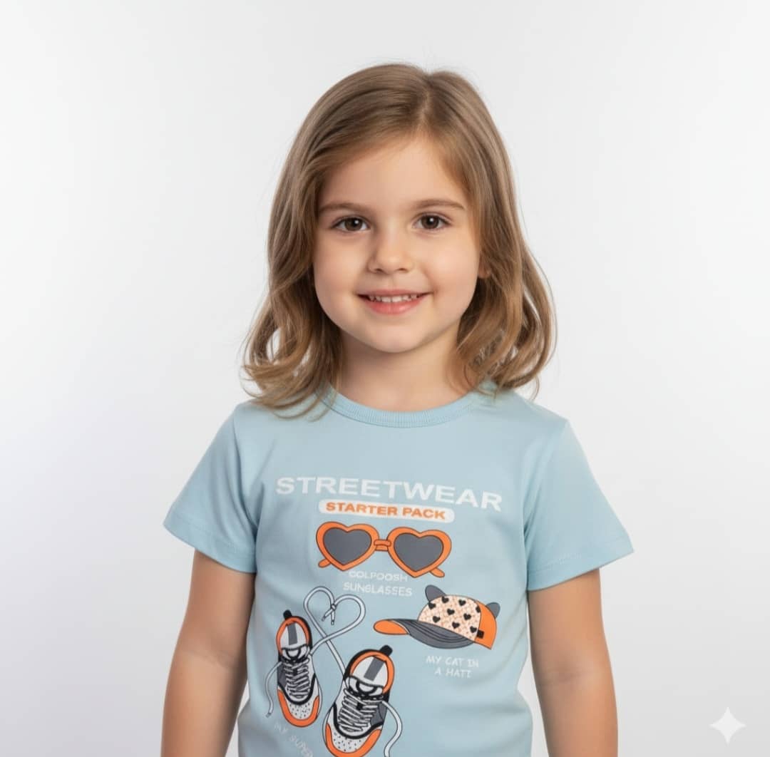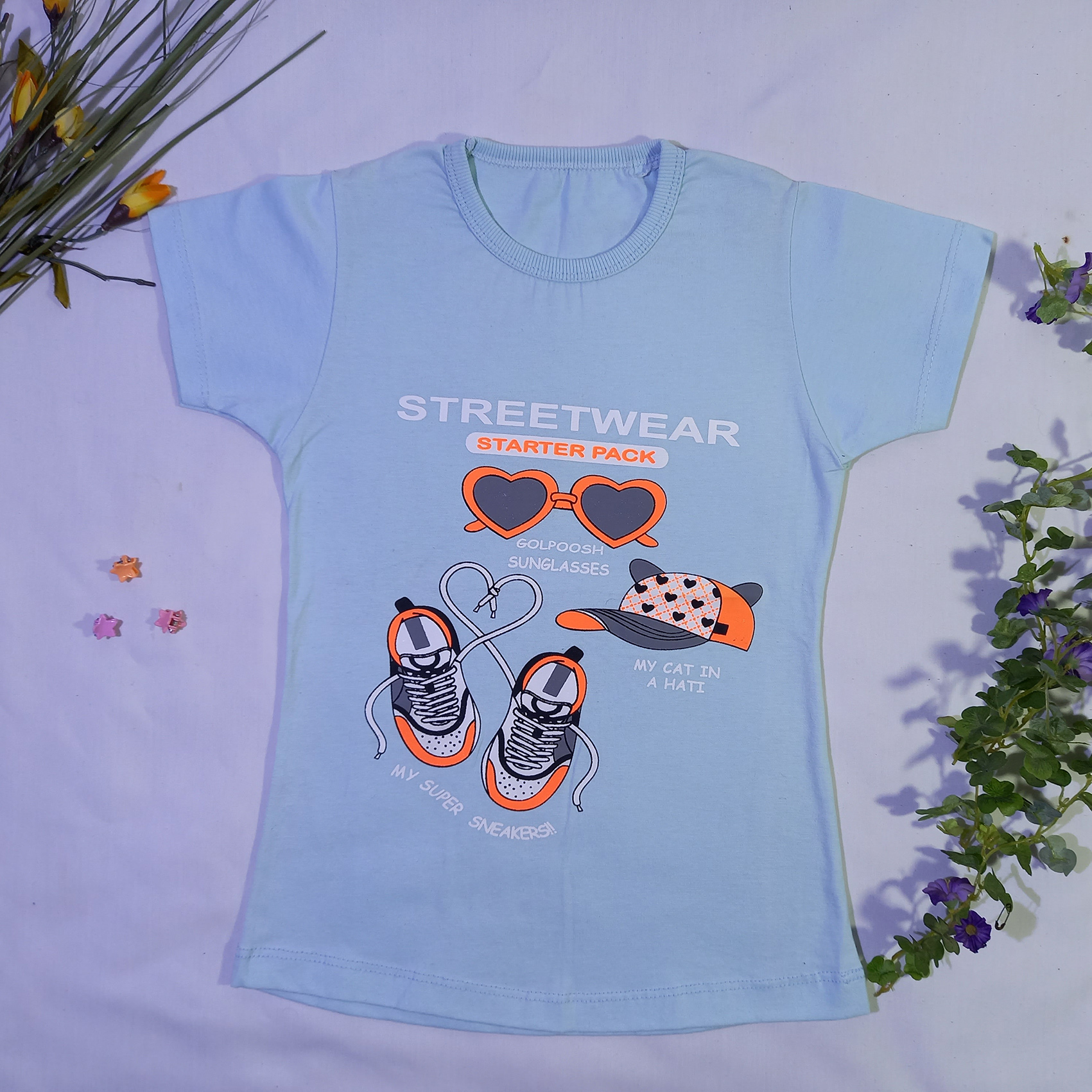 تیشرت دخترانه آستین کوتاه با چاپ برجسته ، جنس نخ پنبه مناسب سن 4تا 10 سال کد 1014