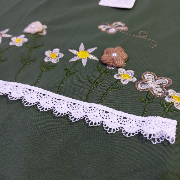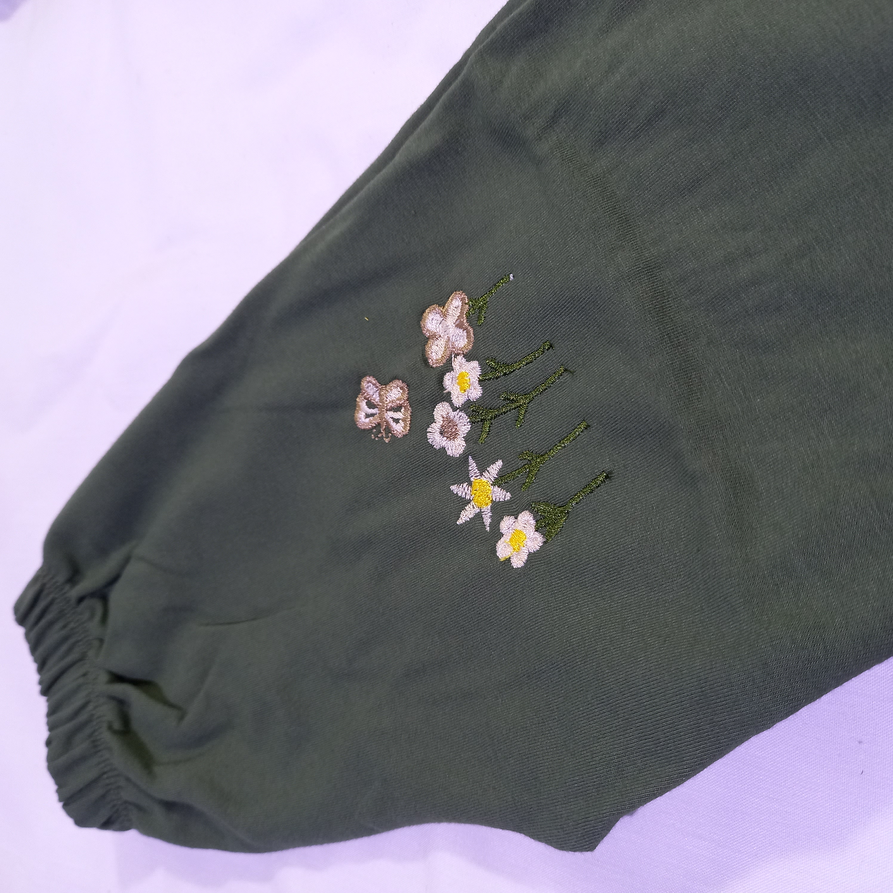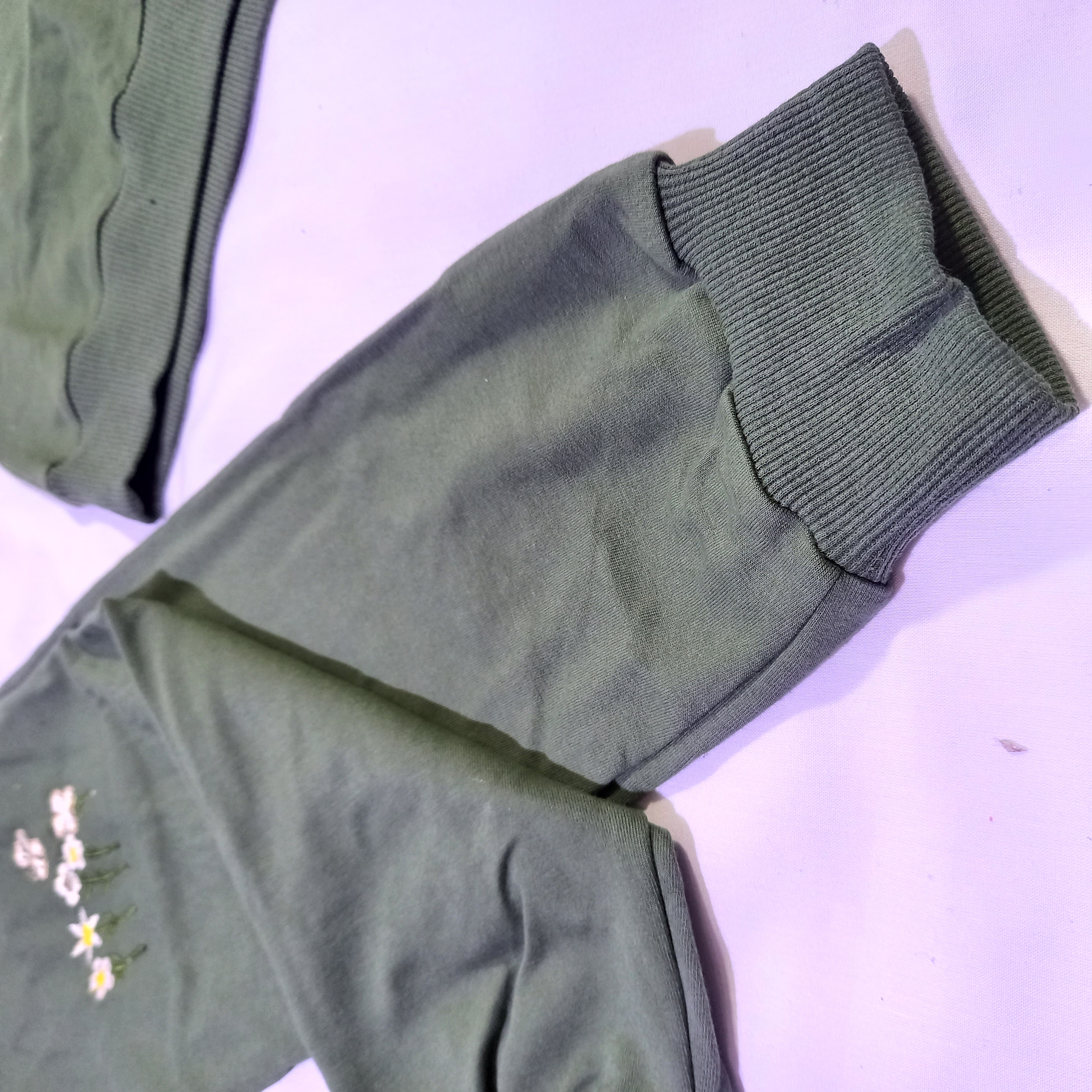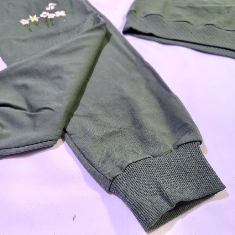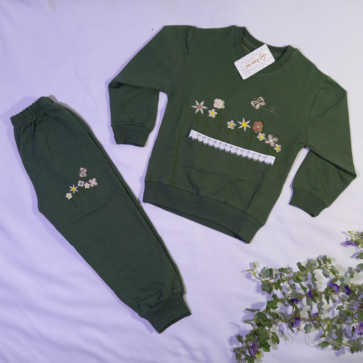 ست بلوز و شلوار دخترانه پاییزه رنگ سبز یشمی باگلدوزی جنس دورس مناسب 2 تا 5 سال کد 1019