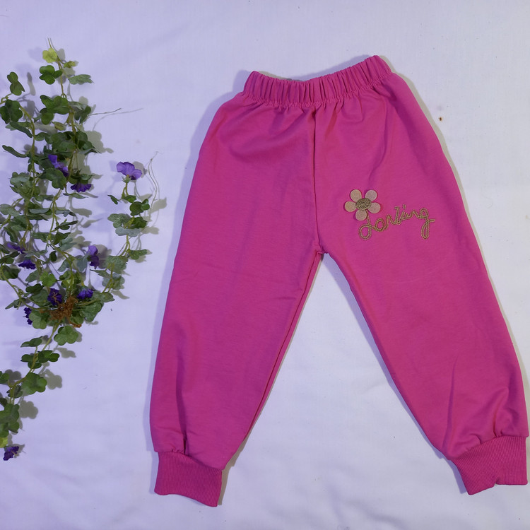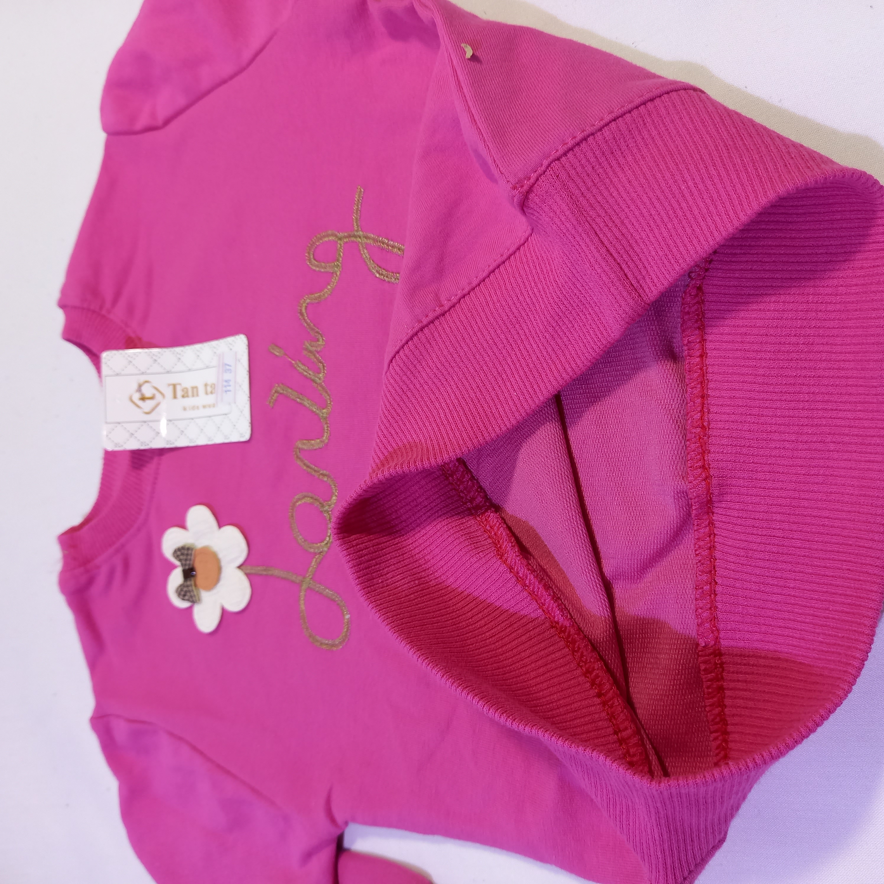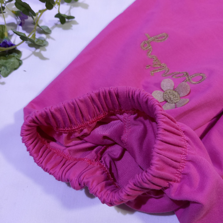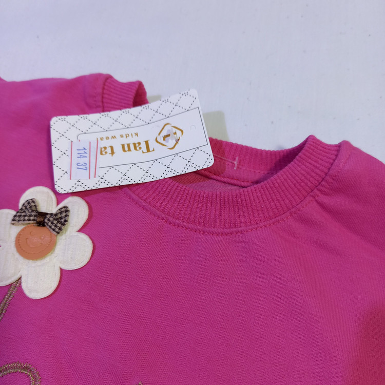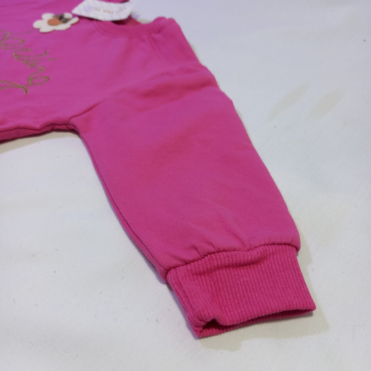 ست بلوز و شلوار دخترانه پاییزه رنگ صورتی پررنگ باگلدوزی و گل برجسته جنس دورس سایز 32 و 37 کد 1018