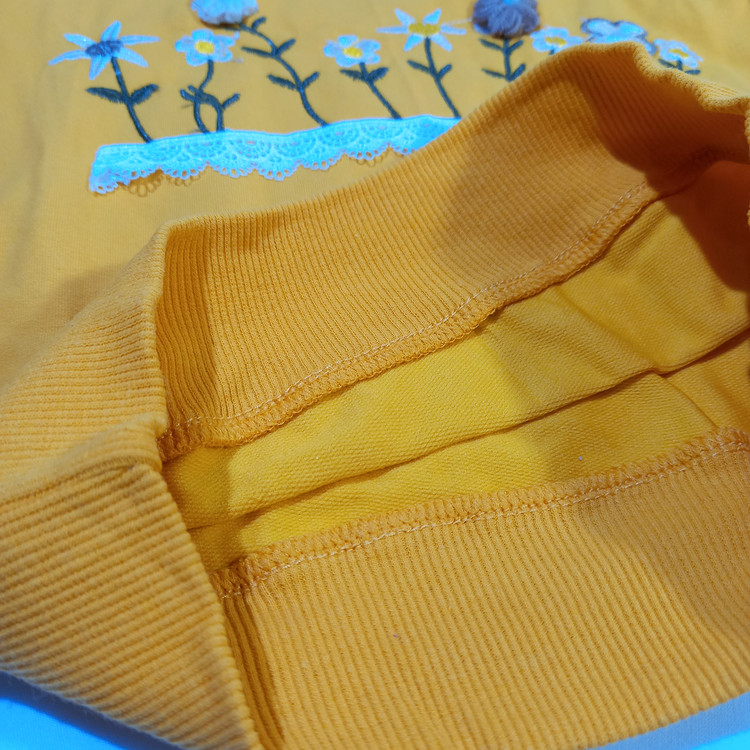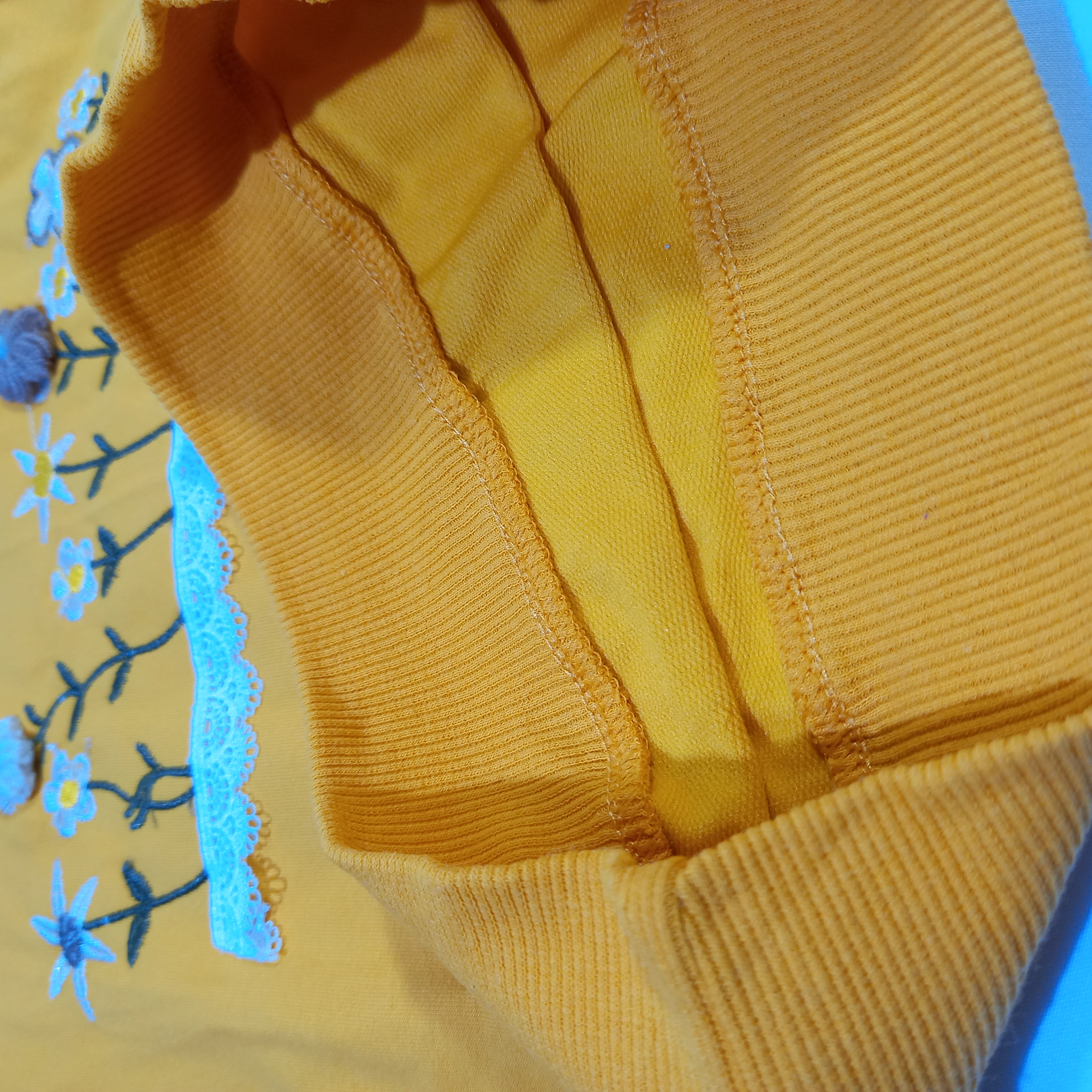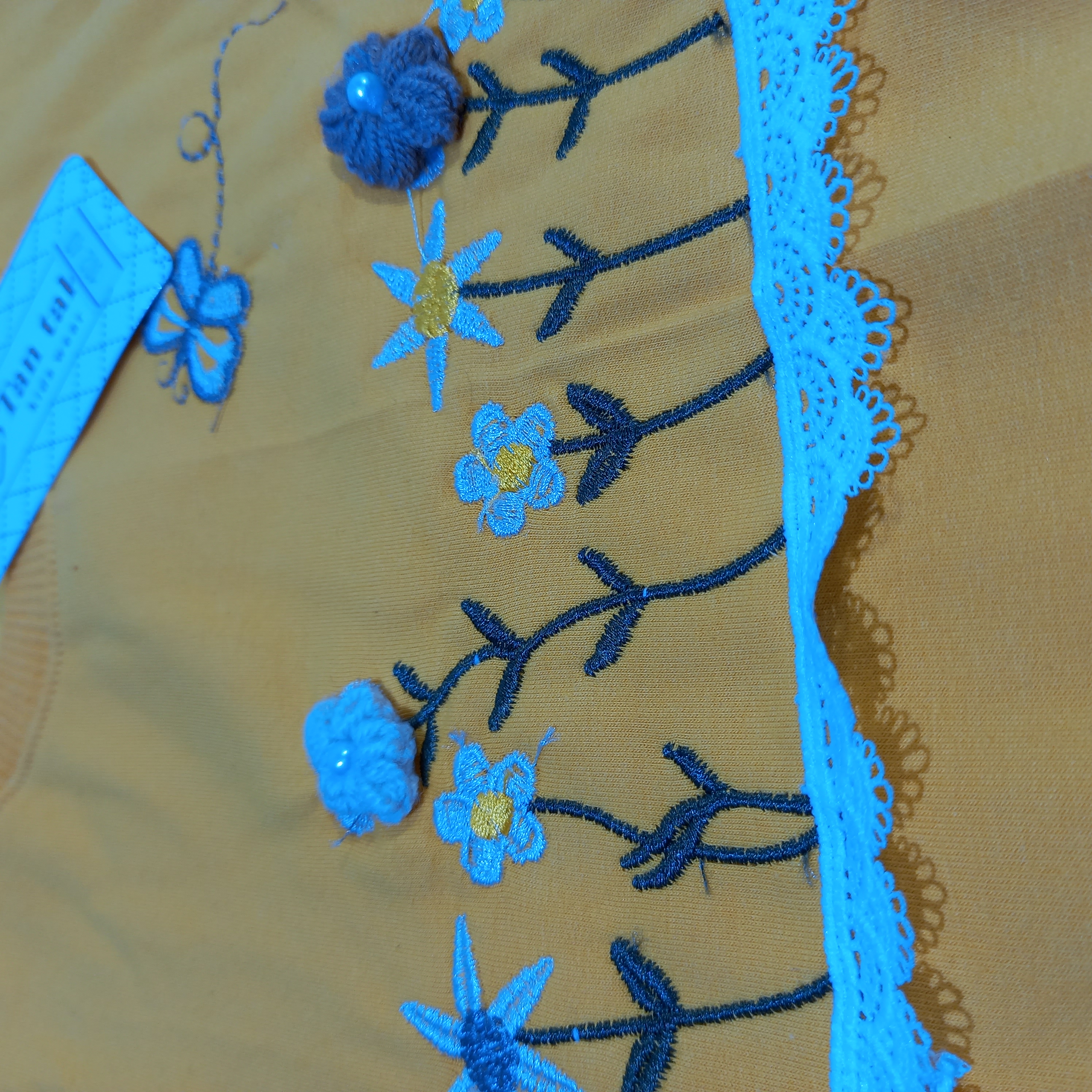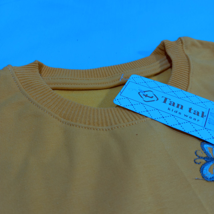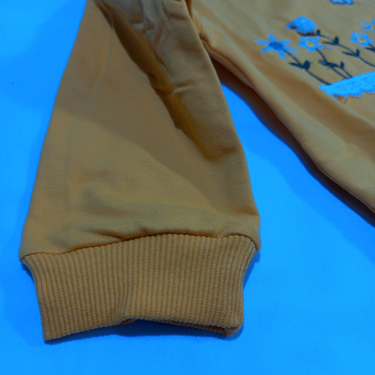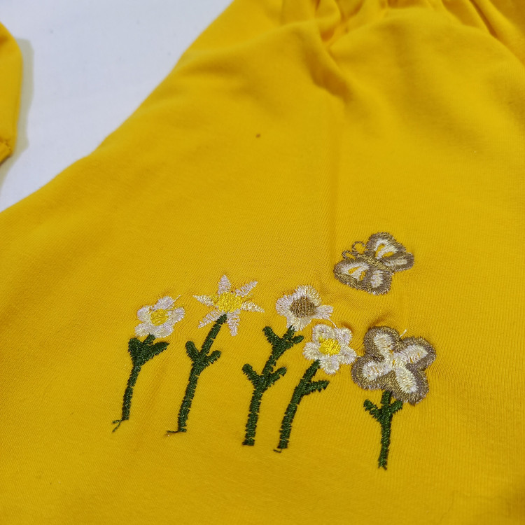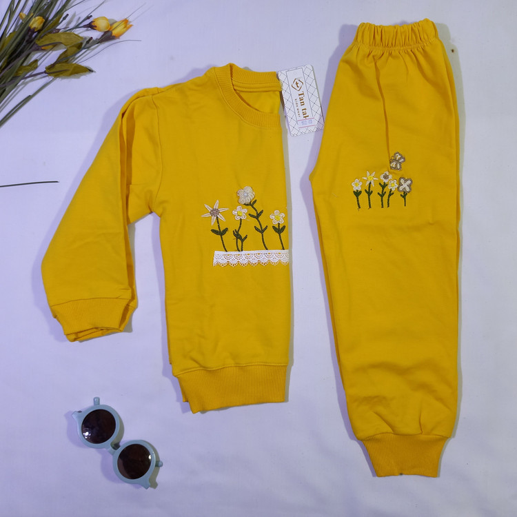 ست بلوز و شلوار دخترانه پاییزه رنگ زرد باگلدوزی جنس دورس مناسب 2 تا 5 سال کد 1019