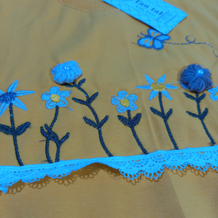 طراحی: گلدوزی گل و پروانه + نوار دانتلی تزئینی