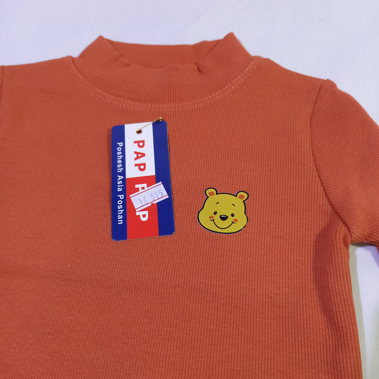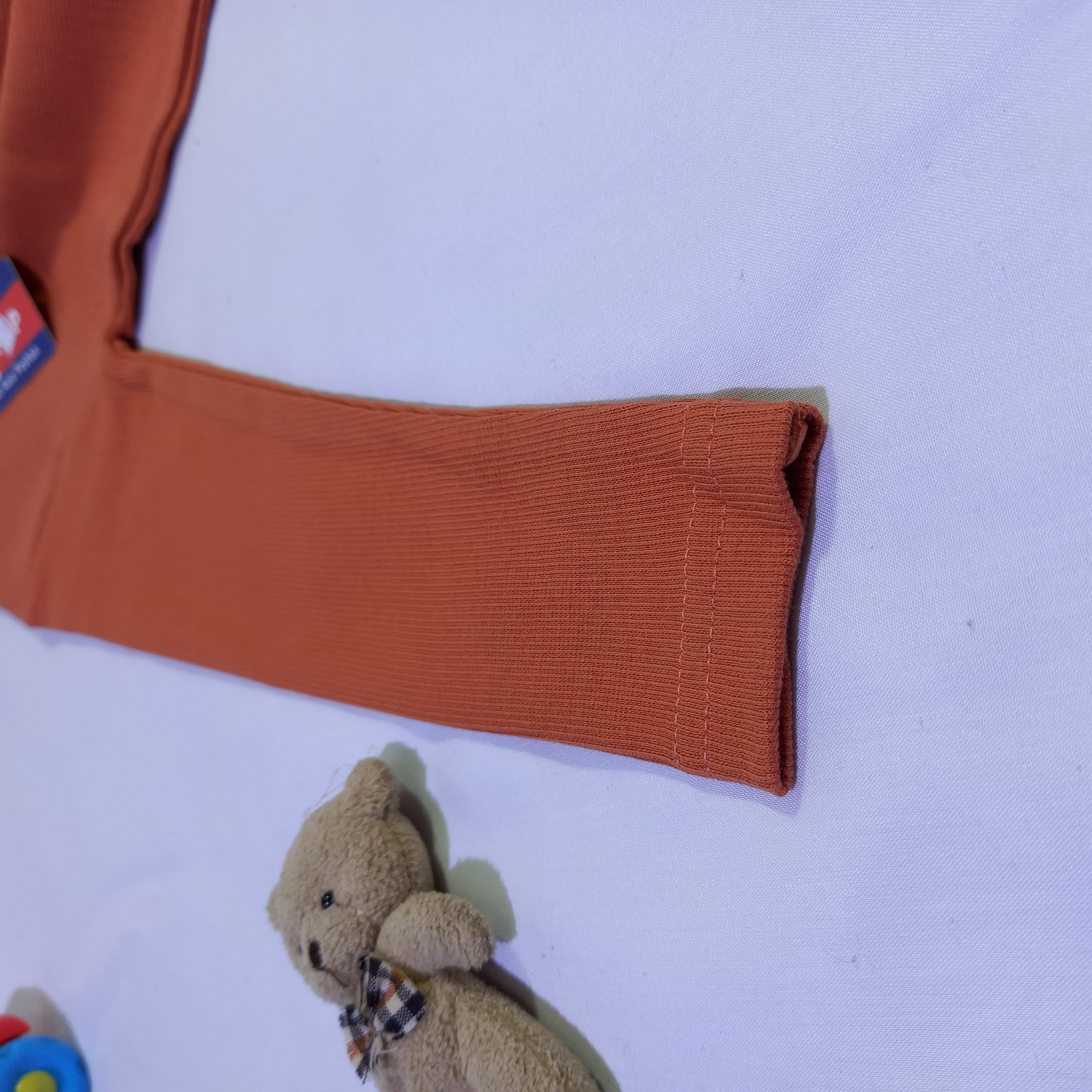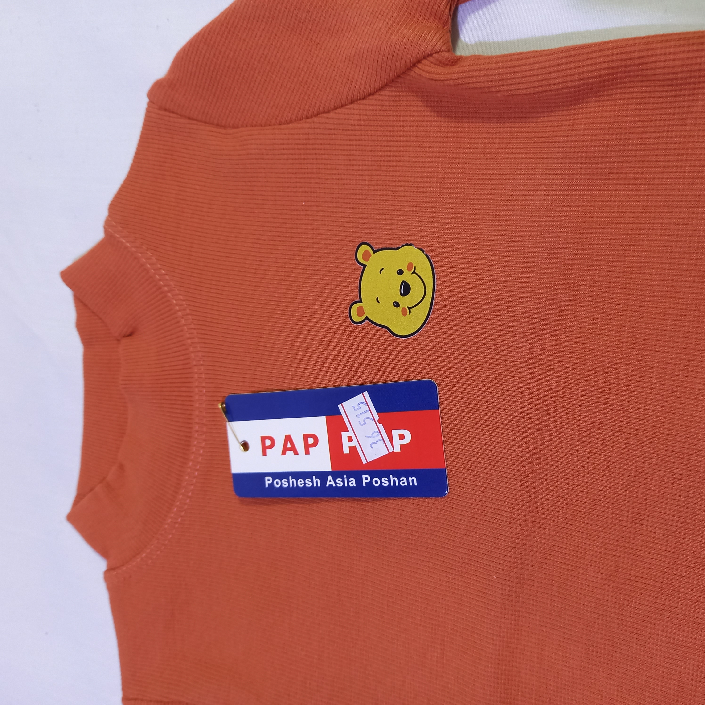 بلوز کبریتی آستین بلند پسرانه خرسی رنگ آجری سایز 33 ، 36 کد 1020