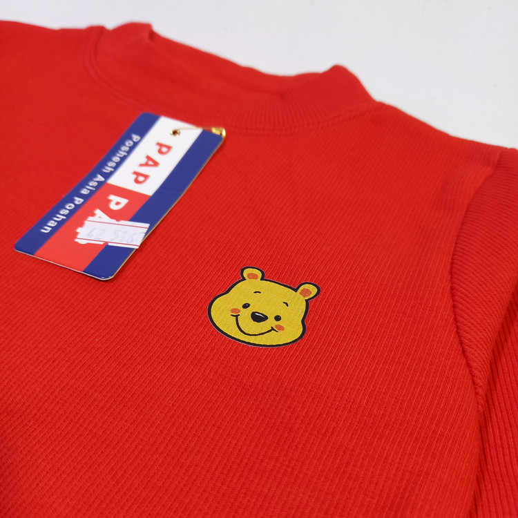 بلوز کبریتی آستین بلند پسرانه طرح خرسی رنگ قرمز یلدایی سایز 40، 45 کد 1022