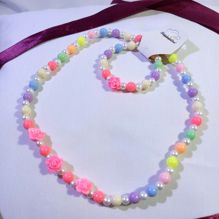 ست دستبند و گردنبند مهره رنگی وارداتی در رنگ بندی مختلف کد 1057