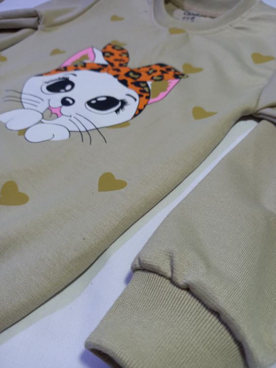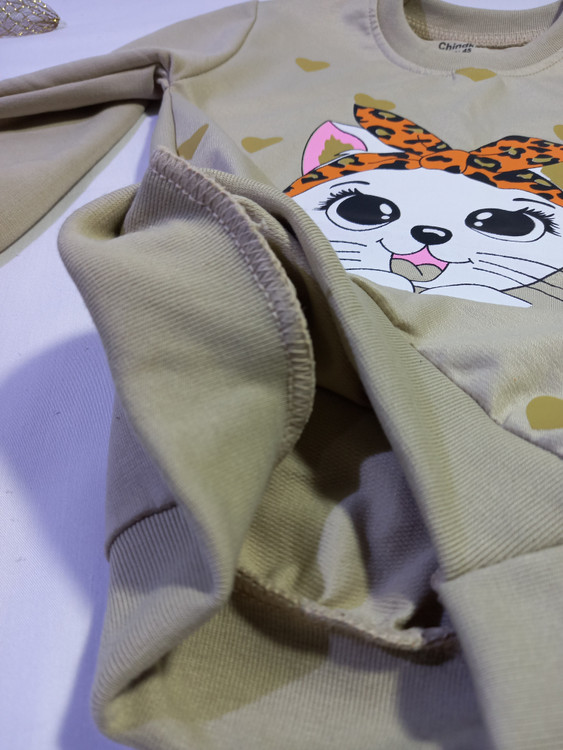 ست اقتصادی بلوز و شلوار دخترانه طرح گربه و شلوار پلنگی سایز 40 ، 45 ، 50 ، 55 کد 1071